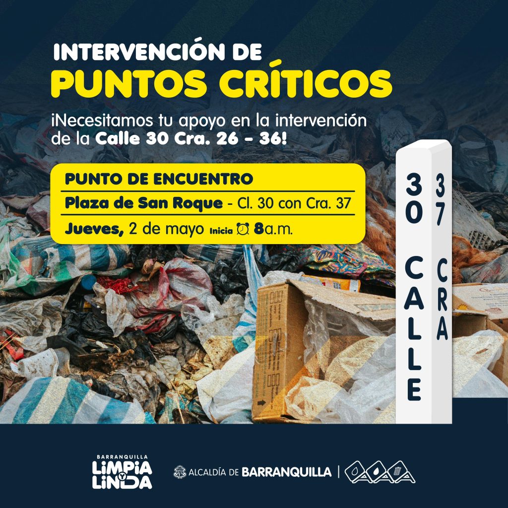 A partir de las 8:00 a.m. se dará inicio a la jornada de intervención en la calle 30 con carrera 37 con jornadas pedagógicas sobre la importancia de disponer responsablemente nuestros residuos y sobre cómo mantener nuestros espacios limpios y visualmente atractivos para los residentes del sector y visitantes de la ciudad.