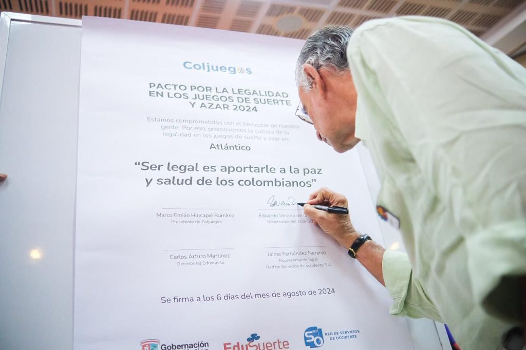 Fortalecer el trabajo interinstitucional para minimizar los impactos negativos que deja al departamento los juegos de azar ilegales, es la principal estrategia de la Gobernación del Atlántico a través de Edusuerte, el Concesionario Red de Servicios de Occidente S.A. y Coljuegos, quienes firmaron este martes el Pacto por la Legalidad 2024.