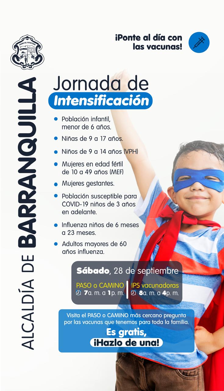 Este sábado, 28 de septiembre, se realiza la segunda jornada de intensificación de la vacunación. La Alcaldía de Barranquilla ha...