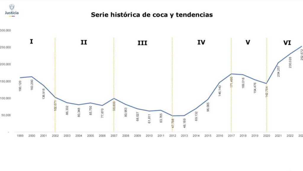 “Esta es la tendencia de crecimiento de los cultivos de hoja de coca, según Naciones Unidas. La tendencia de crecimiento de los cultivos de hoja de coca arranca desde el 2013. No se debe a mi Gobierno”, escribió el mandatario.