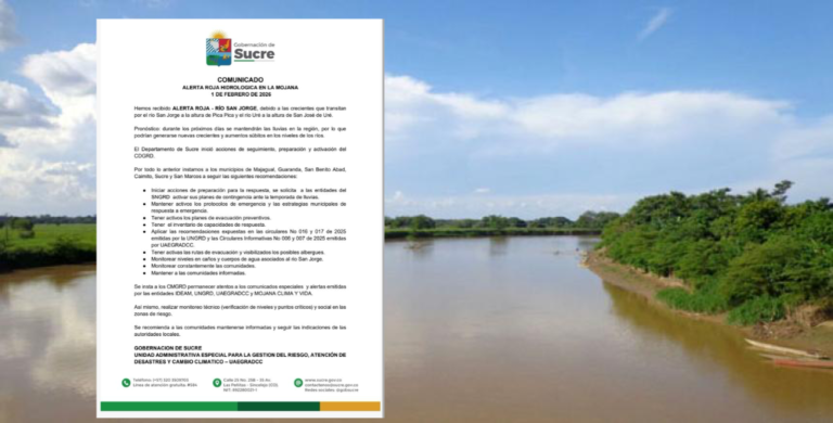 Ante este panorama, el Departamento de Sucre inició acciones de seguimiento, preparación y respuesta, con la activación del Consejo Departamental...
